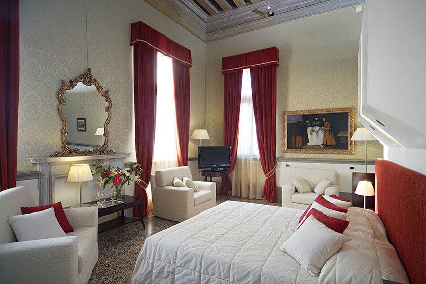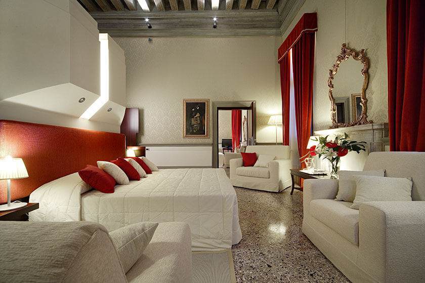 Die leuchtenden, intensiven Farben, die prächtigen, modernen Möbel in den Zimmern, das Sonnenlicht, das durch die kostbaren Vorhänge fällt: Alles in dieser Suite spricht von Romantik und Leidenschaft. Es ist kein Zufall, dass das Mobiliar von Philippe Starck entworfen wurde, einem bedeutenden französischen Designer der zweiten Hälfte des 20.