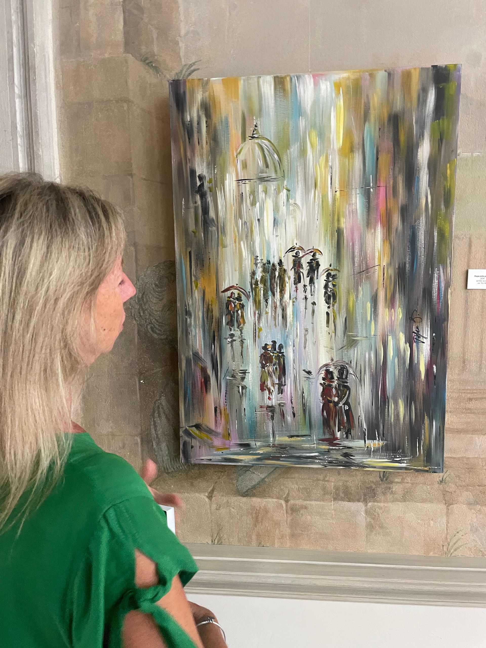 It’s very important for me to be present during exhibitions. At Ruzzini, being a hotel with constant clientele, it’s more difficult. I enjoy interacting with visitors and seeing how much curiosity and attention they give to the works. I love hearing their interpretations. Even though my paintings don’t need much explanation, I’ve noticed how different the perspectives can be from one person to another.